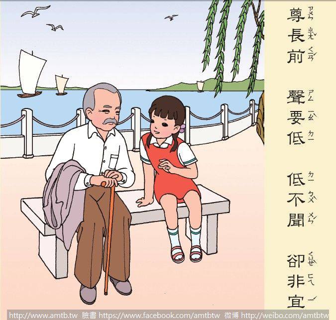 中國很強調中庸之道,其實中庸之道就表現在一個人的日常 生活之中。講話也要強調中庸之道,「尊長前,聲要低」, 這是對長輩的尊敬;「低不聞,卻非宜」,跟長輩講話讓長 輩聽不清楚,那就很失禮了。
