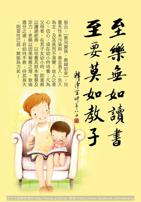 後來把他送到幼兒園,家長也很用心跟老師配合,教導孩子 鞠躬。遇到老師,要跟老師鞠躬,那個孩子站著不動,結果 他媽媽就開始跟老師鞠躬,跟孩子說:「你就像媽媽這樣。 」這個母親鞠了差不多十個躬,孩子如如不動。但因為要上 班了,他媽媽就急忙要離開,走到門口覺得不對,教育要慎於一開始,一開始沒有把他教會,往後要教就愈來愈困難。